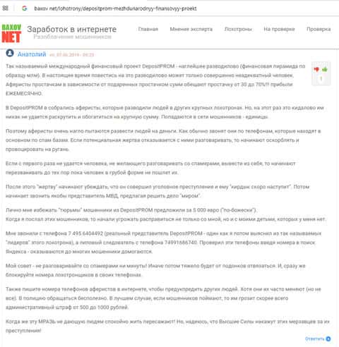 Правдивый отзыв об МММ-пирамиде DepositProm