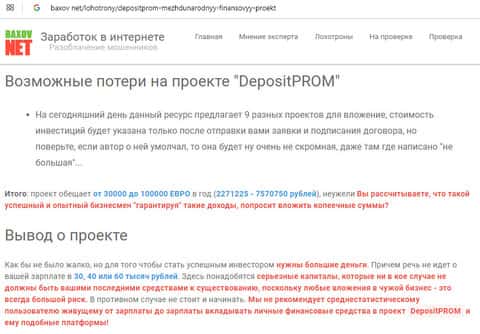 Клиент потерял много времени на исследование лохотрона Депозит Пром