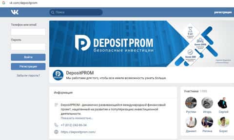 Мошеннический хайп Депозит Пром использует социальные сети в качестве привлечения как можно большего количества клиентов, которых они используют потом в качестве жертв, обнося их карманы. Пока есть поток лохов, контора DepositProm процветает. Далее представлен список ссылок на которые не стоит переходить: