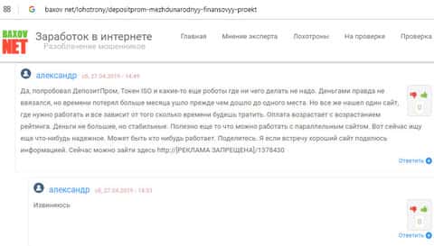 И заканчивается веб-ресурс лохотрона DepositProm купленными отзывами людей, которые продались, лишь бы получить деньги за свой липовый отзыв. Обычно это очень психологически давит на новоиспеченного клиента и на радостях он попадает в ловушку. Понятное дело, что контора Депозит Пром на это как раз и рассчитывает.