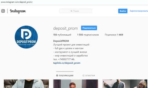 - аккаунт в Инстаграм instagram com/deposit_prom