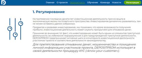 Что касается каких либо регулирующих документов на проведения своей деятельности, контора Депозит Пром использует различные отмазки и замыливает глаза. В их понимании регулирование - это процедура KYC и независимый аудит. А то что нужно разрешение от регулирующего органа, им не ведомо.