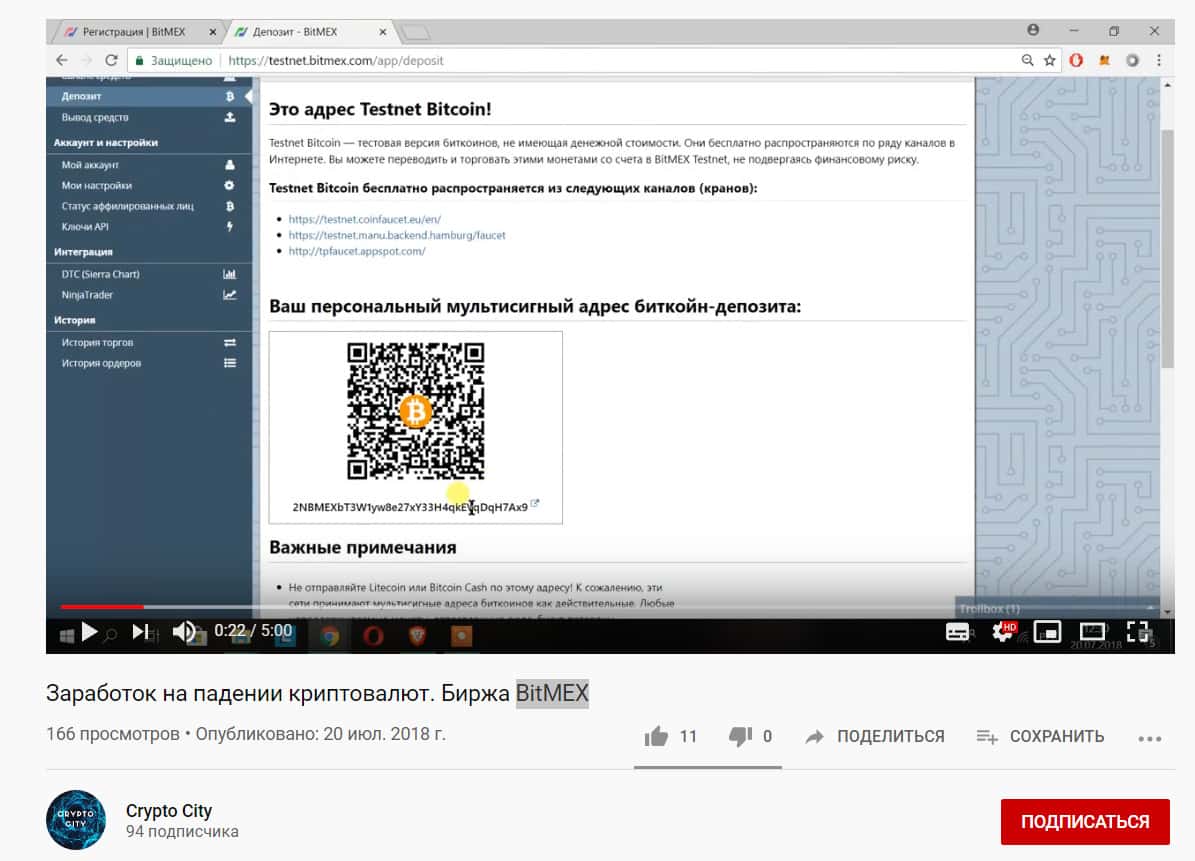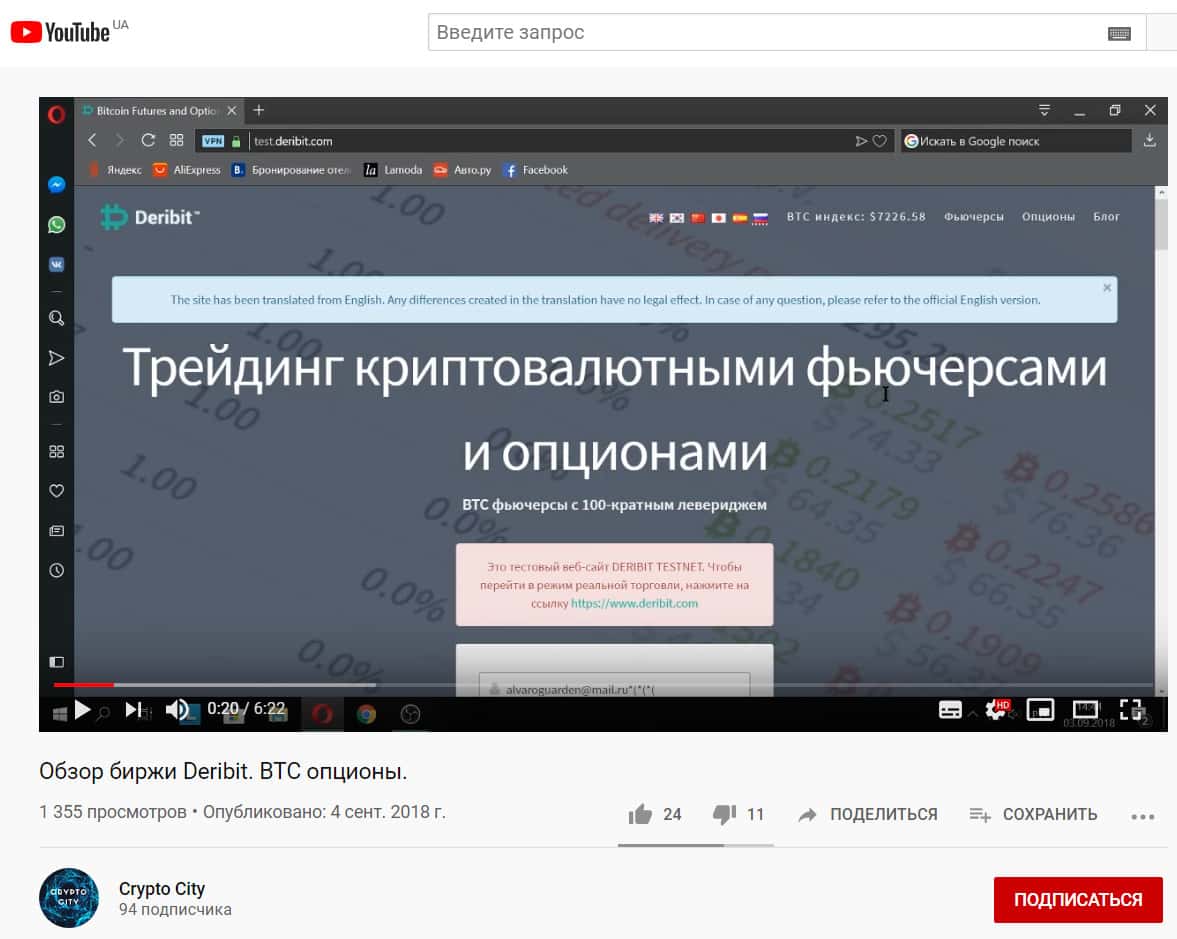 На ютуб канале Crypto City, где идет реклама заработка на криптовалютном рынке, также был сделан рекламный обзор и на так называемую биржу Дерибит. Блогер-лохотронщик продвигая все эти скам проекты, обманывает подписчиков канала.