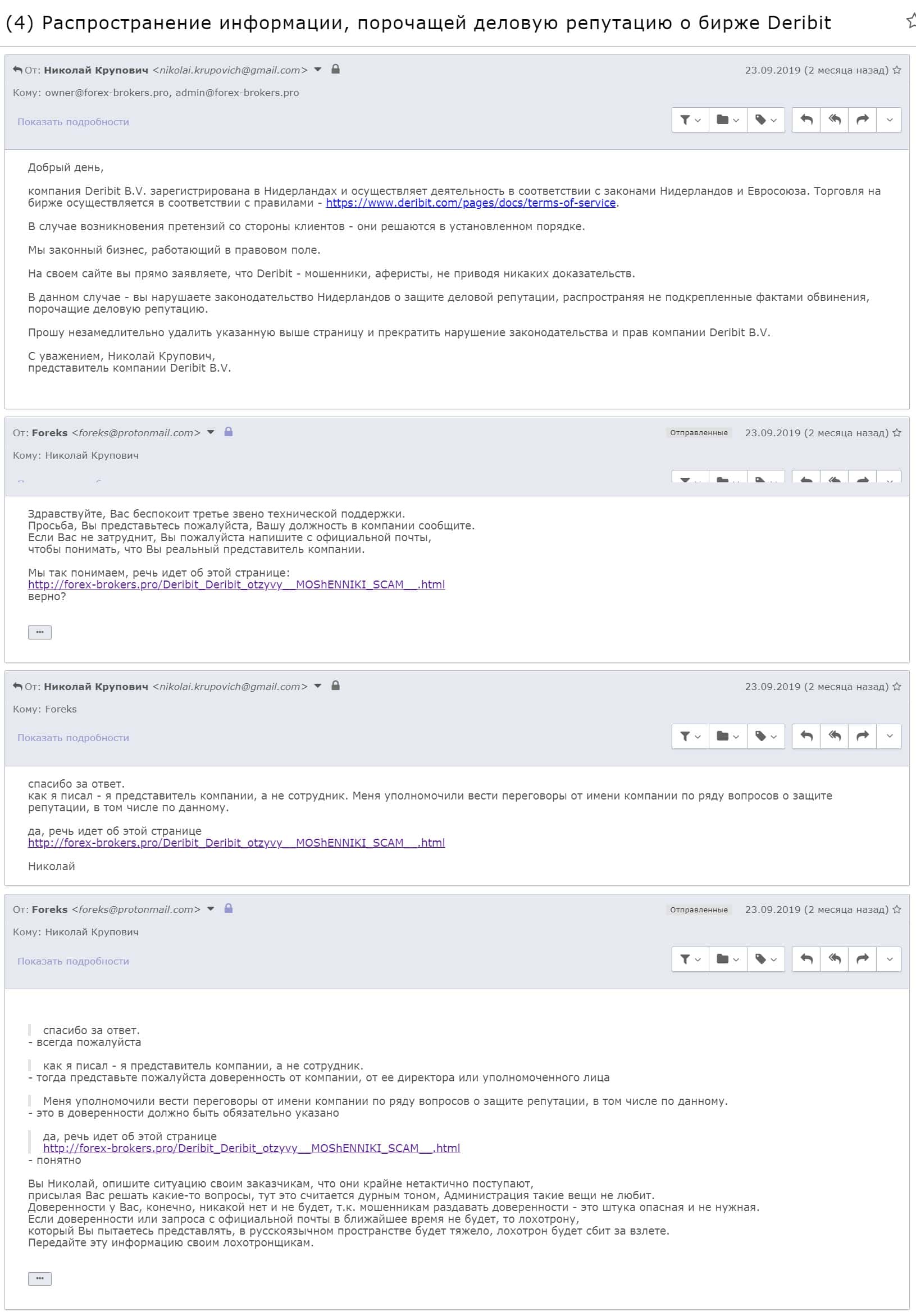 С левого е-майла пишут по поводу лохотрона Дерибит, требуют удалить информацию о лохотроне. Выкладываем ниже переписку в полном объеме, с ответом лохотронщикам из Дерибит.