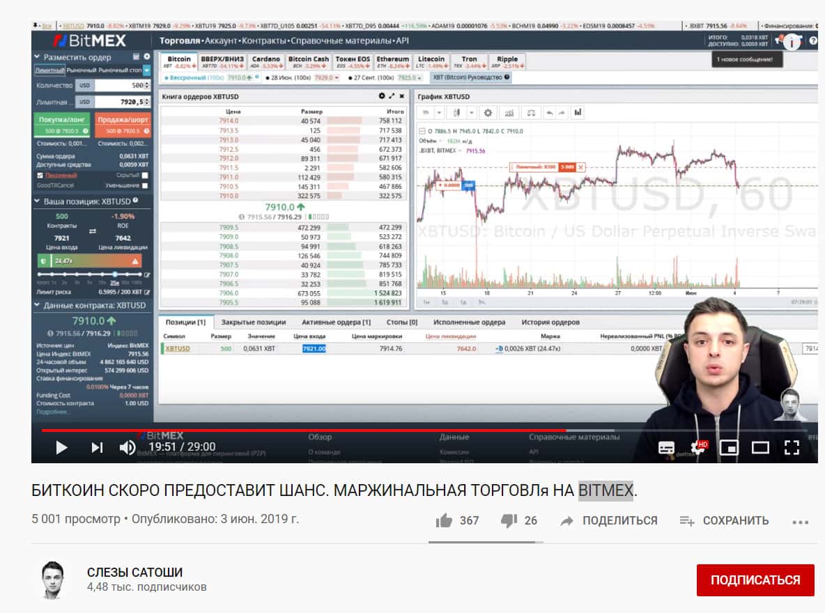 Также на данном канале людям рекламировали и другие платформы для трейдинга на криптовалютном рынке, среди которых биржа Бит Мекс, где уже есть те, кого по хитрому развели на неплохую сумму, украв биткоины. Об этом случае кидалова на крипто-рынке можно прочитать в статьей о BitMEX.