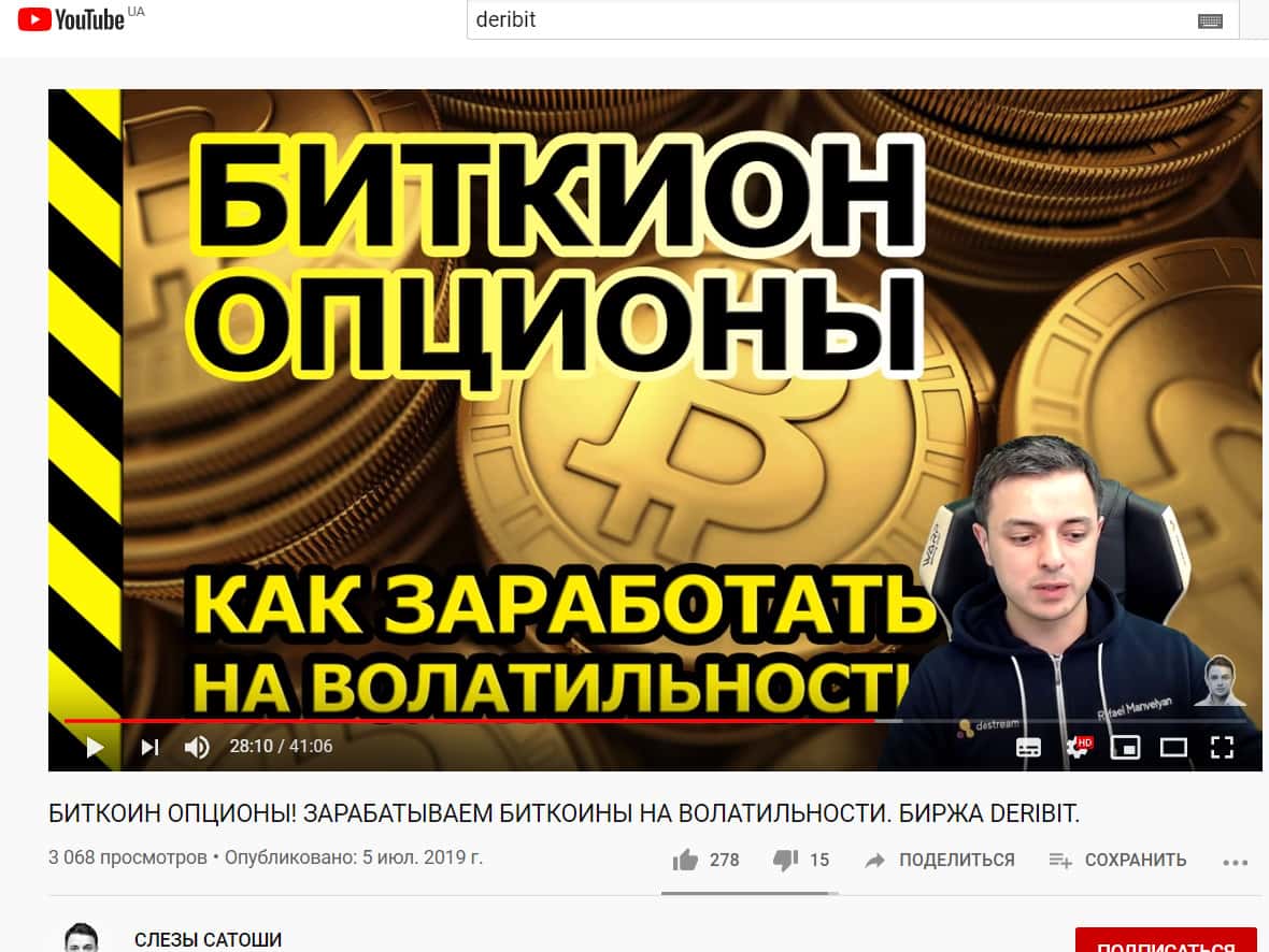 Ютуб канал "Слезы Сатоши" преподносит ложную информацию, рекомендуя использовать лохотрон Deribit