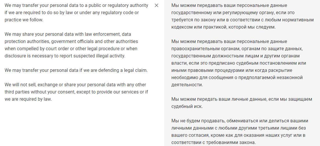 В политике конфиденциальности так же не все так просто, так как шулера Дерибит заявляют, что они имеют право передавать персональные данные своих клиентов различным госструктурам, правоохранительным органом и своим партнерам. Как только информация вышла за пределы компании, то кухня Deribit перестает нести ответственность.