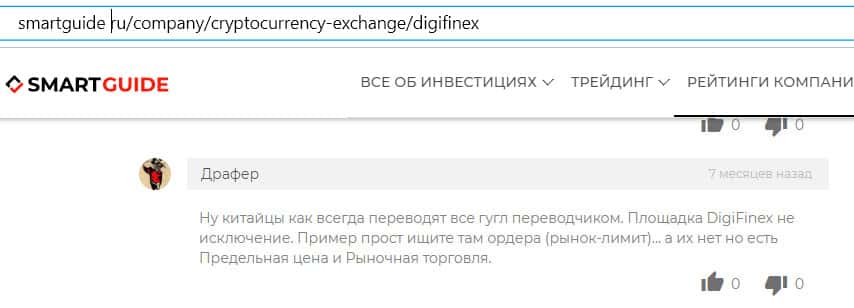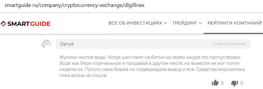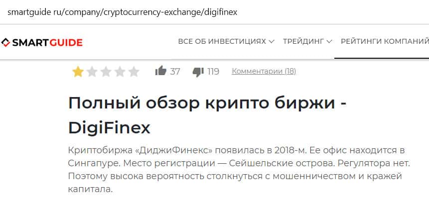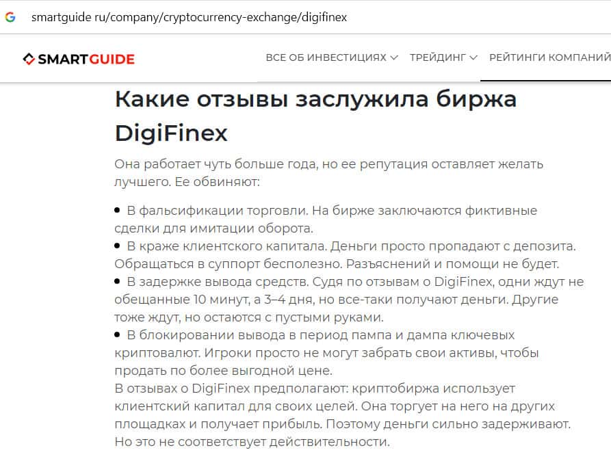 - Критика сомнительной криптобиржи Диги Файнекс на сайте smartguide ru