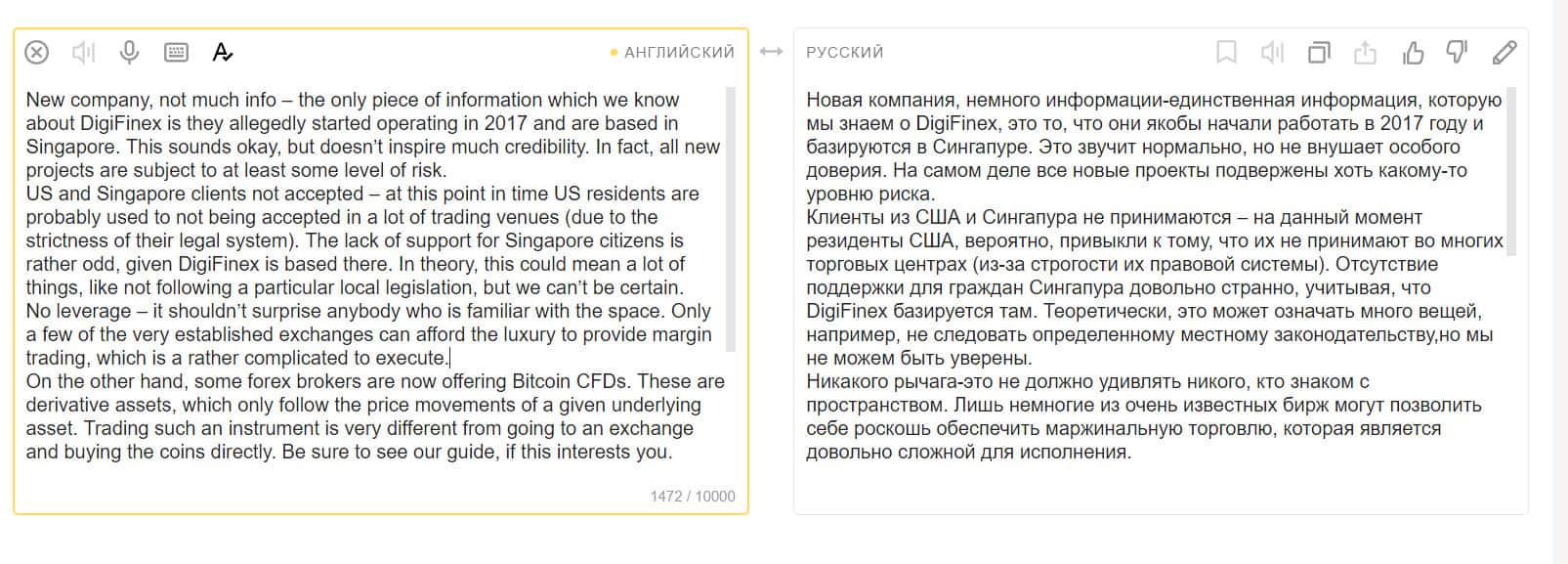 Очередной отзыв в сети говорит о том, что русскоязычные пользователи недовольны качеством площадки Диги Файнекс. Помимо прочих минусов торговли, это еще и ужасный перевод сервиса, из-за которого люди не могут понять, как пользоваться площадкой. Еще одна китайская биржа-лохотрон, на которой не хочется торговать.