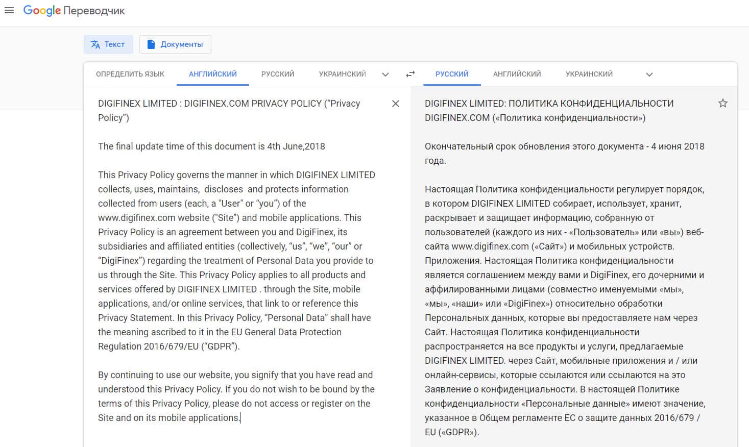 Политика конфиденциальности у мошенников DigiFinex начинается с довольно стандартной информации о том, что это за документ и зачем он нужен, в ходе которой лохотрон Диги Файнекс ставит условие о том, что пользователи соглашаются с политикой фактом посещения и использования данного сайта. На изображении ниже вы можете увидеть начало политики жулья.