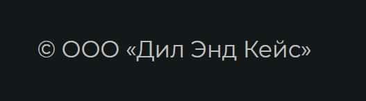 Внизу главной страницы сайта Дил Энд Кейс указано, что юридическим лицом этой конторы является ООО «Дил Энд Кейс».
