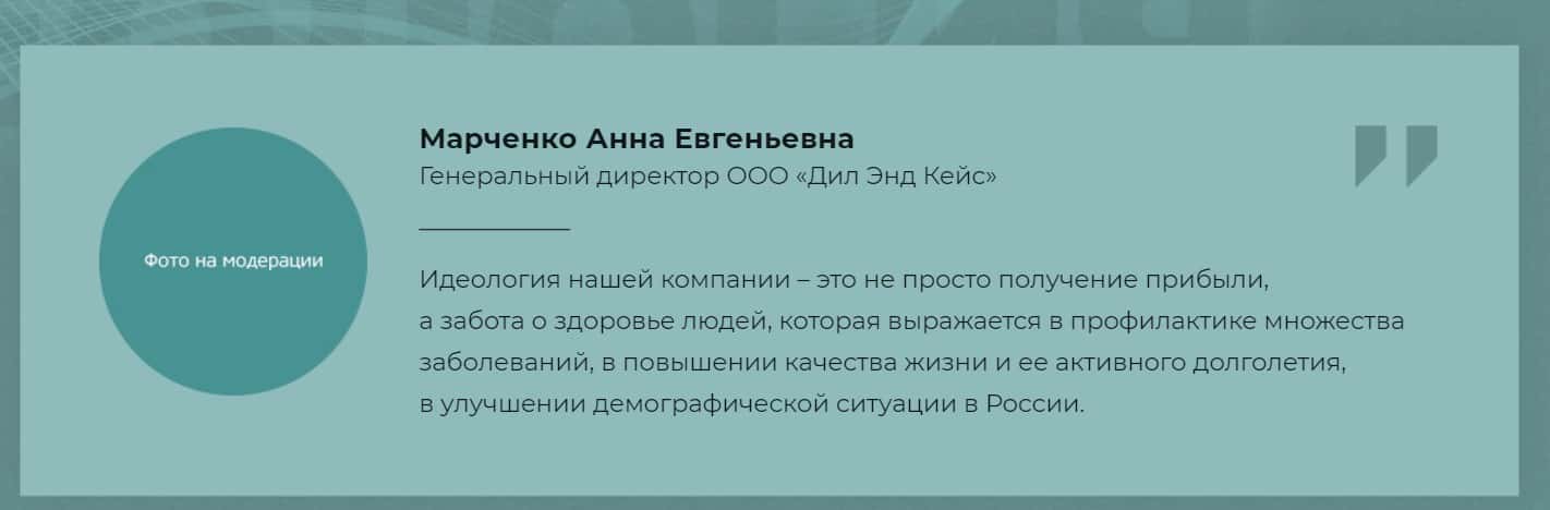 Мошенники Дил Энд Кейс написали на своем сайте имя генерального директора, но оно явно фейковое, так как его фото якобы постоянно находится на модерации.