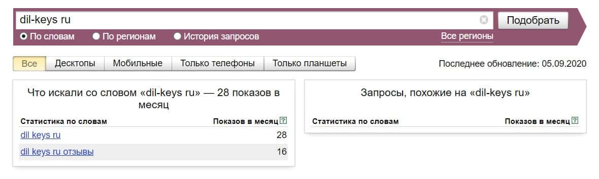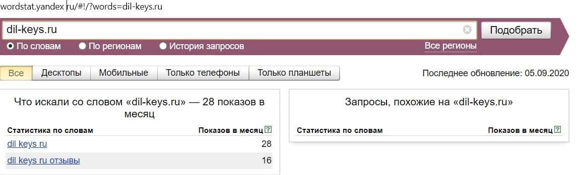 Количество запросов в поисковике Яндекс по доменному имени "dil-keys ru" без точки, не отличается от предыдущего. Результат: 28 показов.