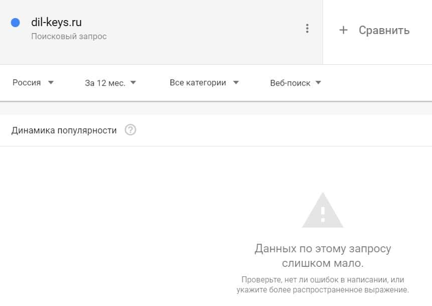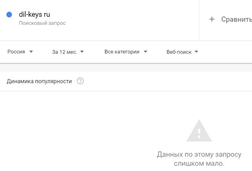 Количество запросов по домену "dil-keys ru", вбитого в поисковик Гугл без точки, с пробелом, также происходило крайне мало раз.