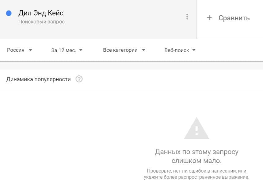 Посмотрим, сколько раз люди искали название бренда "Дил Энд Кейс" на русском языке с пробелом. Незначительное количество запросов.
