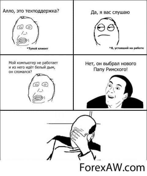- от себя хочу попросить не наказывать сотрудника тех. поддержки и не делать из него «козла отпущения». Потому что он выражал не свое личное мнение, а мнение всего клиентского отдела и сотрудников, находящихся в этот момент и ему наверняка было приказано так ответить;