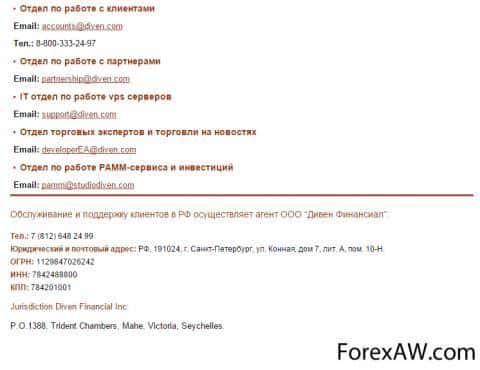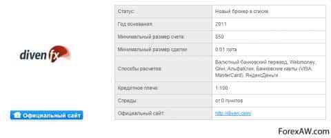 - Справочная информация о дилинговом центре DivenFx