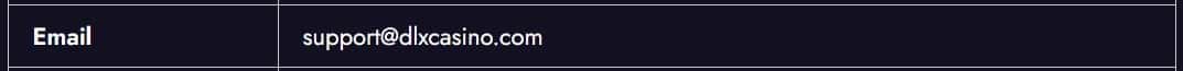 Ниже вы можете ознакомиться с единственным контактом DLX Casino, где указана только электронная почта. Поэтому оперативно связаться с этими разводилами не получится: