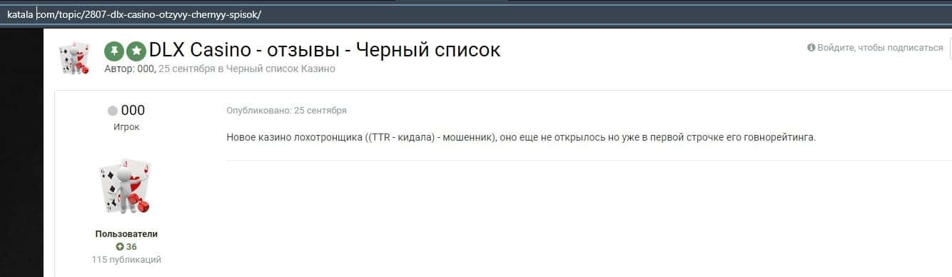 Далее представлен еще один материал уже с другого ресурса о шаражной конторе DLX Casino, где ее также занесли в черный список и никому не советуют связываться с ними.