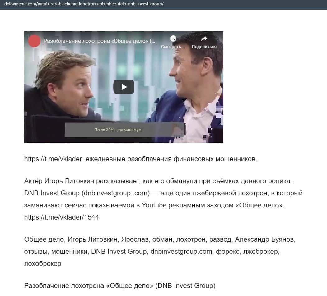 - Статьи с других ресурсов мошенников DNB Invest Group