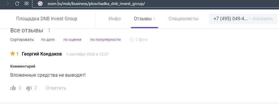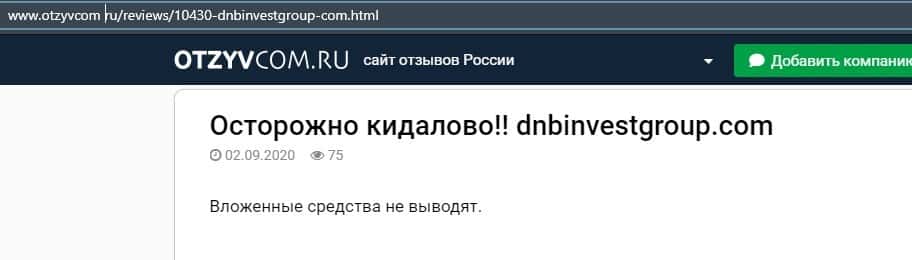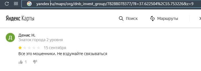 - Отзывы о деятельности конторы ДНБ Инвест Групп