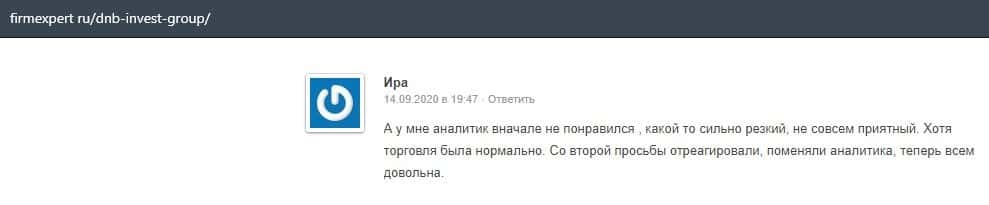 Девушка рассказала, как ей попался очень грубый аналитик, который работает в конторе DNB Invest Group. После последнего разговора она не желает вкладывать деньги туда.