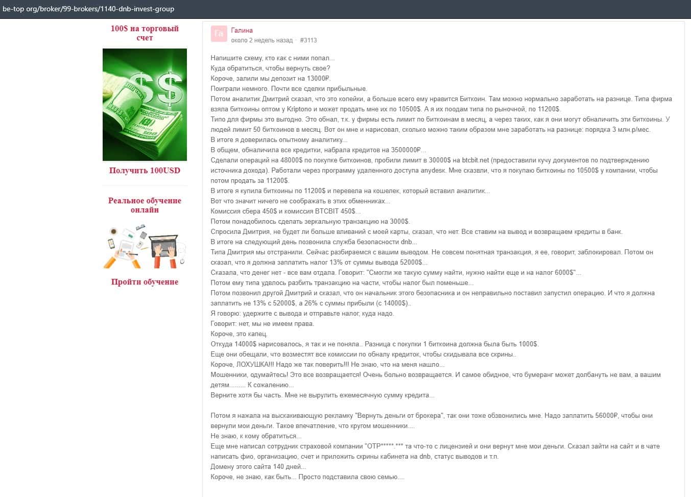 - Мошенники из ДНБ Инвест Групп сливают деньги клиентов