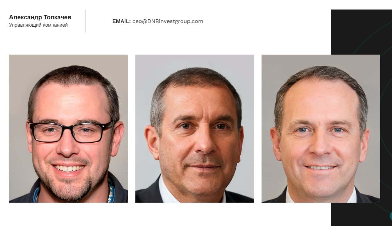 Что касается руководства лохотрона ДНБ Инвест Групп, то здесь представлены фейковые персонажи. Фотографии взяты из соцсетей, а имена и фамилии выдуманы.