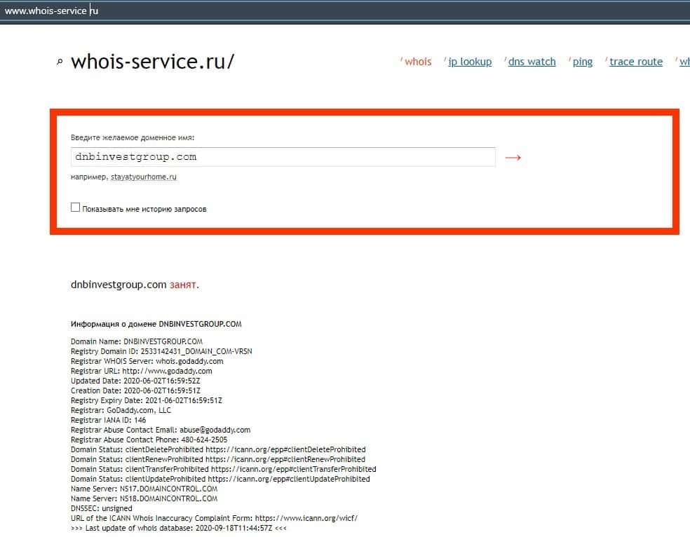 - Кто владеет доменом ресурса dnbinvestgroup com?