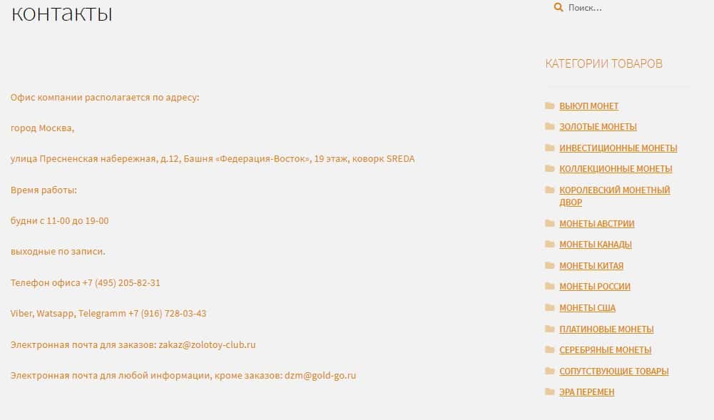- электронная почта для заказов: zakaz@zolotoy-club ru и dzm@gold-go ru (кроме заказов)