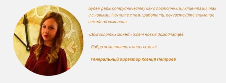 - Дом золотых монет контора, которая тщательно следит за отзывами в сети