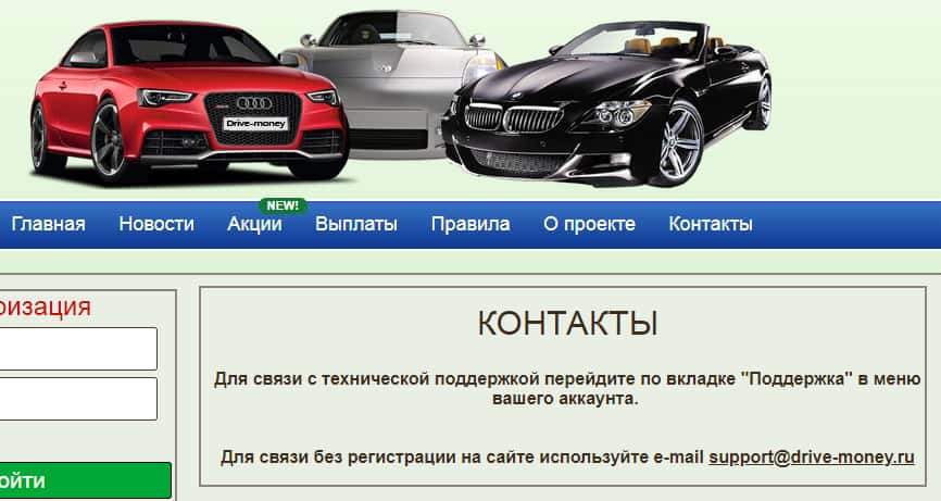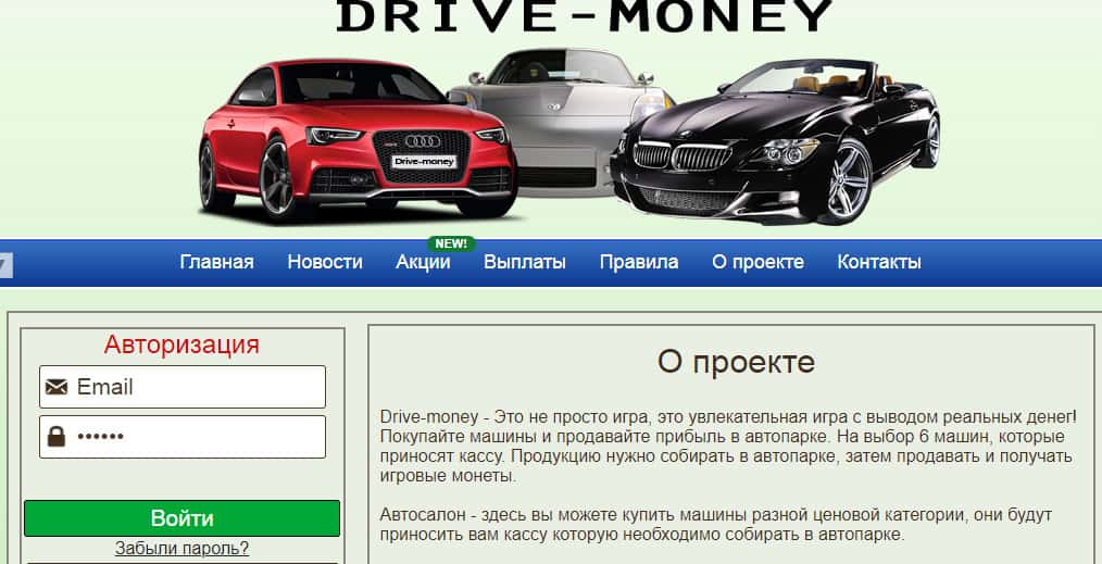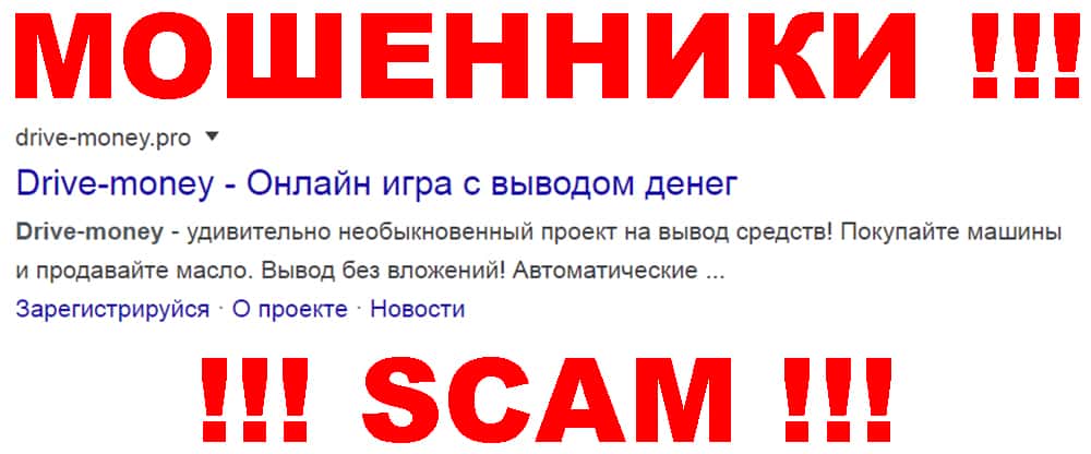 Драйв Мани - очередные мошенники сети интернет, которые занимаются наглым разводом наивных пользователей сети интернет под довольно необычным предлогом онлайн игры, рассчитанной на реальные инвестиции жуликам Drive-Money Pro пользователями. В связи с этим иметь дело и сотрудничать с аферистами Драйв Мани определенно не рекомендуем !!!