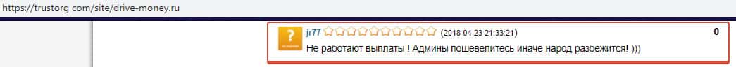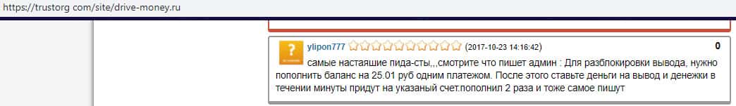 - Негативный Отзыв в сторону лохотрона Драйв Мани с веб-сайта траст орг