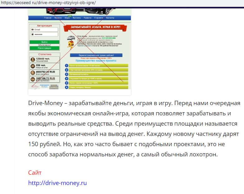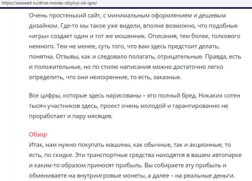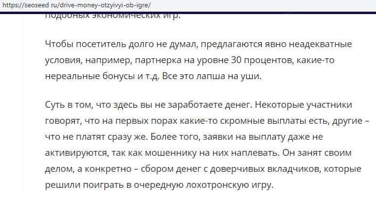 - Негативная статья об аферистах Драйв Мани с веб-площадки seoseed ru