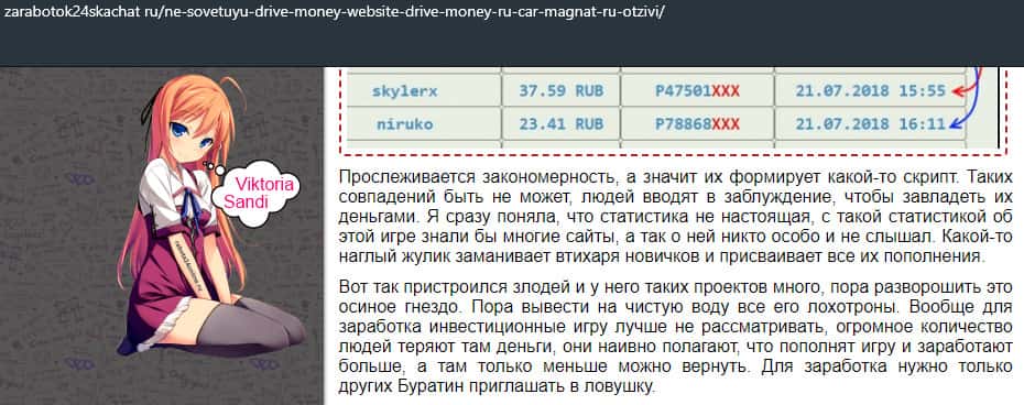 - Статья о лохотроне Драйв Мани с веб-сайта zarabotok24skachat ru