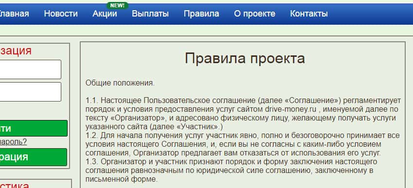 - Условия клиентского соглашения мошенников Drive-Money Pro