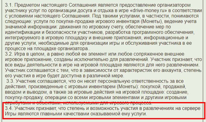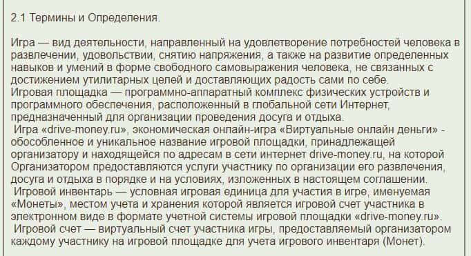 После в условиях клиентского соглашения у аферистов Drive-Money Pro следует условие о том, что данный проект является развлекательным и не рассчитан на гарантированное получение прибыли, что является одним из возможных путей и причин ухода мошенников Драйв Мани от ответственности пользователей, связанные непосредственно с данным сайтом.