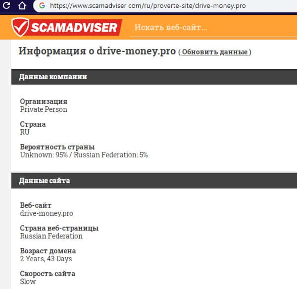 - Обзор на подвальный сайт мошенников Drive-Money Pro