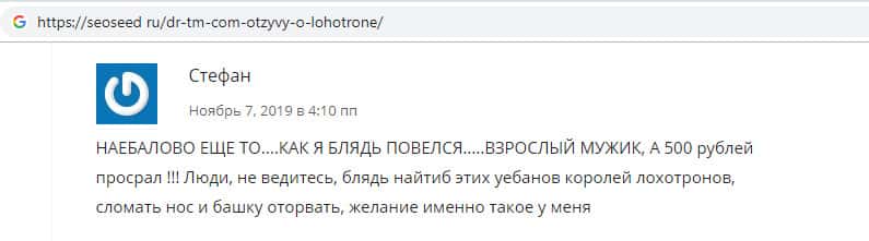 Пользователь с ником Стефан оставил свой отзыв на портале seoceed ru, полный нецензурных слов и выражений. Так Стефан ругается из-за своей доверчивости и наверное глупости вложить денежные средства в проект Дрим Тим.
