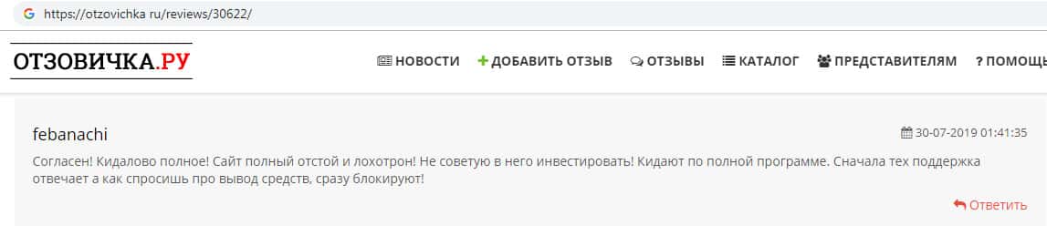 Соглашается с мнением, что проект Дрим Тим представляет собой финансовую пирамиду, и пользователь по ником fibonachi. В его отзыве описана последовательность работы проекта Дрим Тим: сначала исправно работает техподдержка, производится несколько минимальных выплат, затем выплаты блокируются, а техподдержка перестает отвечать на запросы клиента.