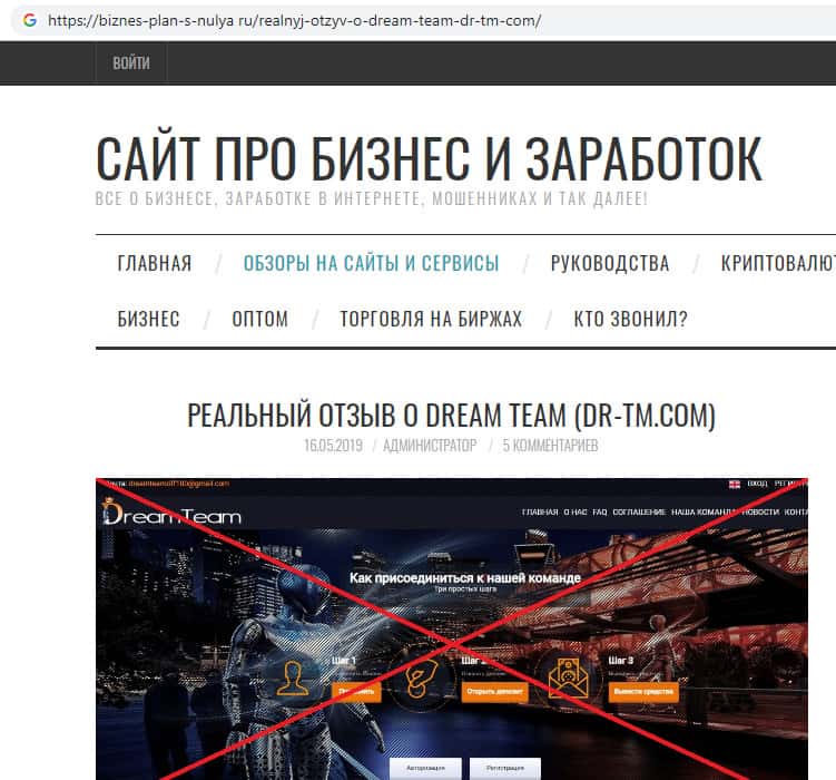 Приговор для Dream Team на портале biznes-plan-s-nulya ru: финансовая пирамида