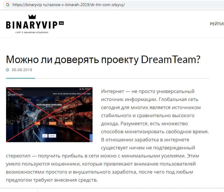 - Разоблачение мошенничества Dream Team на портале binaryvip ru