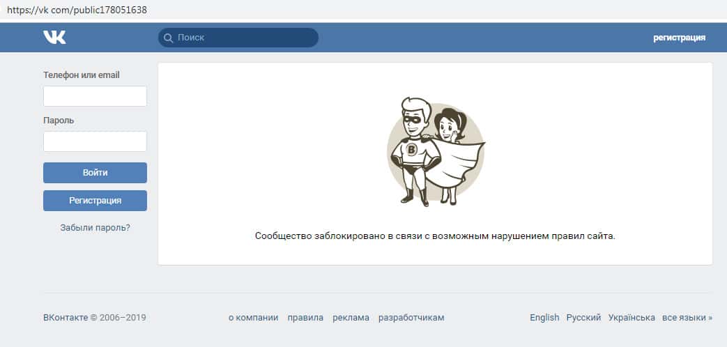 - Заблокированная страница компании Дрим Тим в социальной сети ВКонтакте