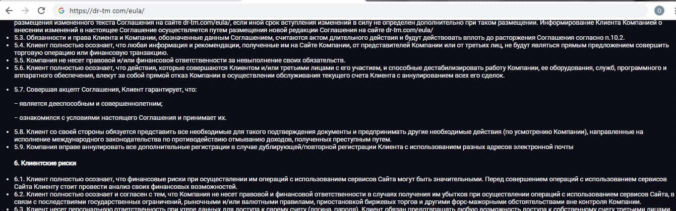 Дрим Тим в своем клиентском соглашении прямо предупреждает своих клиентов о предстоящем скаме