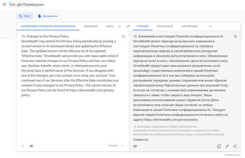 Завершается же политика конфиденциальности у лохотрона Drive Wealth вполне ожидаемо, а именно информацией о том, что мошенники Драйв Вэйлт могут в любой момент по своему личному усмотрению изменить данную политику конфиденциальности без предварительного уведомления. На изображении, расположенном ниже, вы можете наглядно увидеть окончание политики жуликов Drive Wealth.