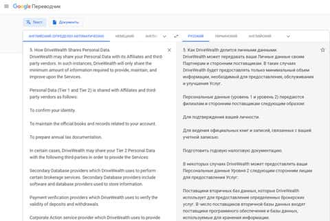 После в политике конфиденциальности мошенников Drive Wealth следует информация о том, что жулики Драйв Вэйлт могут в любой момент по своему личному и персональному усмотрению передавать личную и персональную информацию своих пользователей третьим лицам. На изображении, расположенном ниже, вы можете увидеть очередной раздел политики шулеров Drive Wealth.
