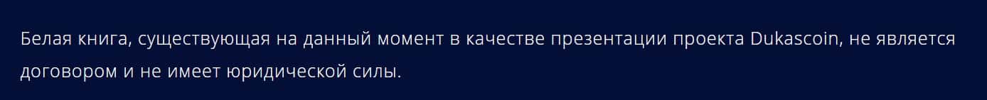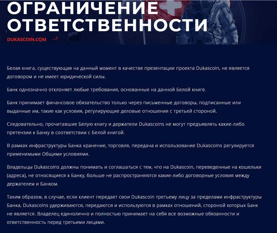 Ниже вы можете прочитать полный текст документа, называемого ограничением ответственности от компании Дукас Коин.