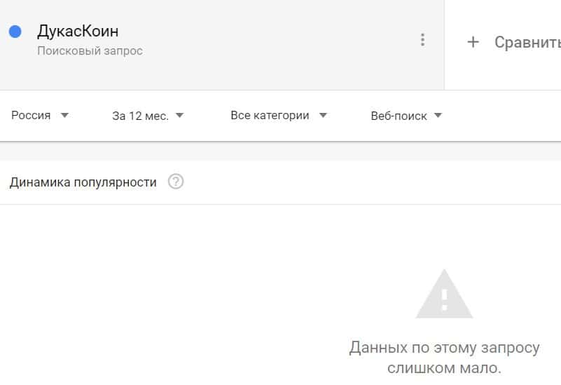 Посмотрим, насколько популярно название бренда "DukasСoin", написанное на английском языке. Данных по этому запросу нет, так как никто не искал этот бренд в Гугл.