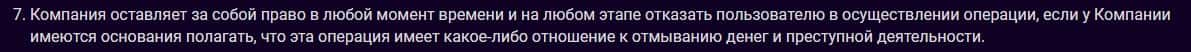 Аферисты JVSpin имеют право отказать пользователю в осуществлении операций, включая вывод денежных средств со счета.