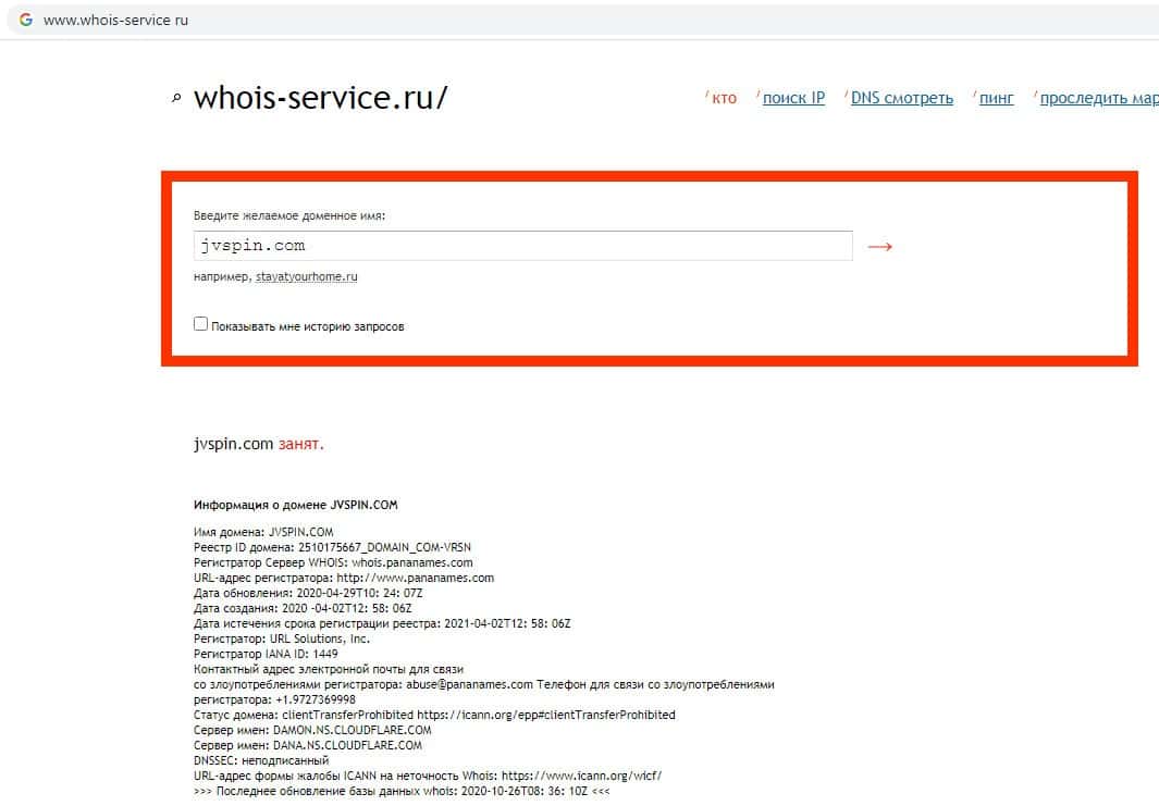 Проведя анализ данных по сайту JVSpin Com, не было обнаружено информации о владельце домена, что является еще одним признаком того, что мы имеем дело с лохотроном.